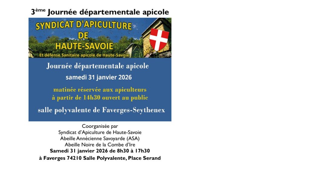 Le syndicat d’apiculture de Haute Savoie organise une journée apicole le 27 janvier à Faverges. La matinée est réservée …
